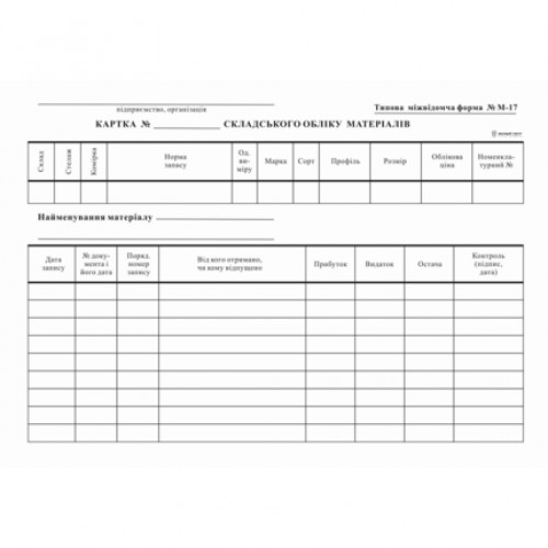 Картка складського обліку матеріалів 1+1А5 карт.(3801)